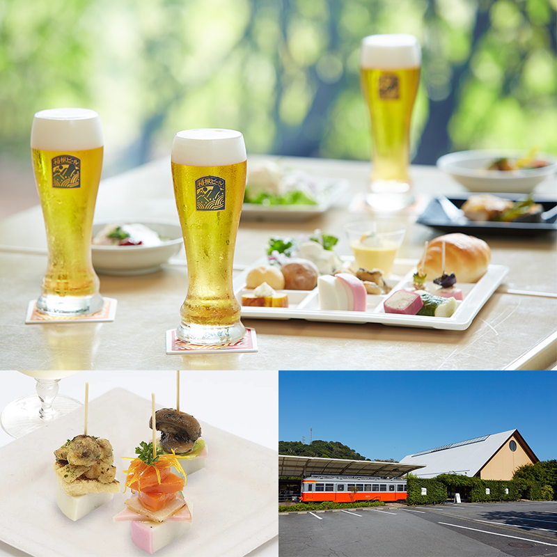使って育てた野菜や果物を使ったお料理と箱根ビール。