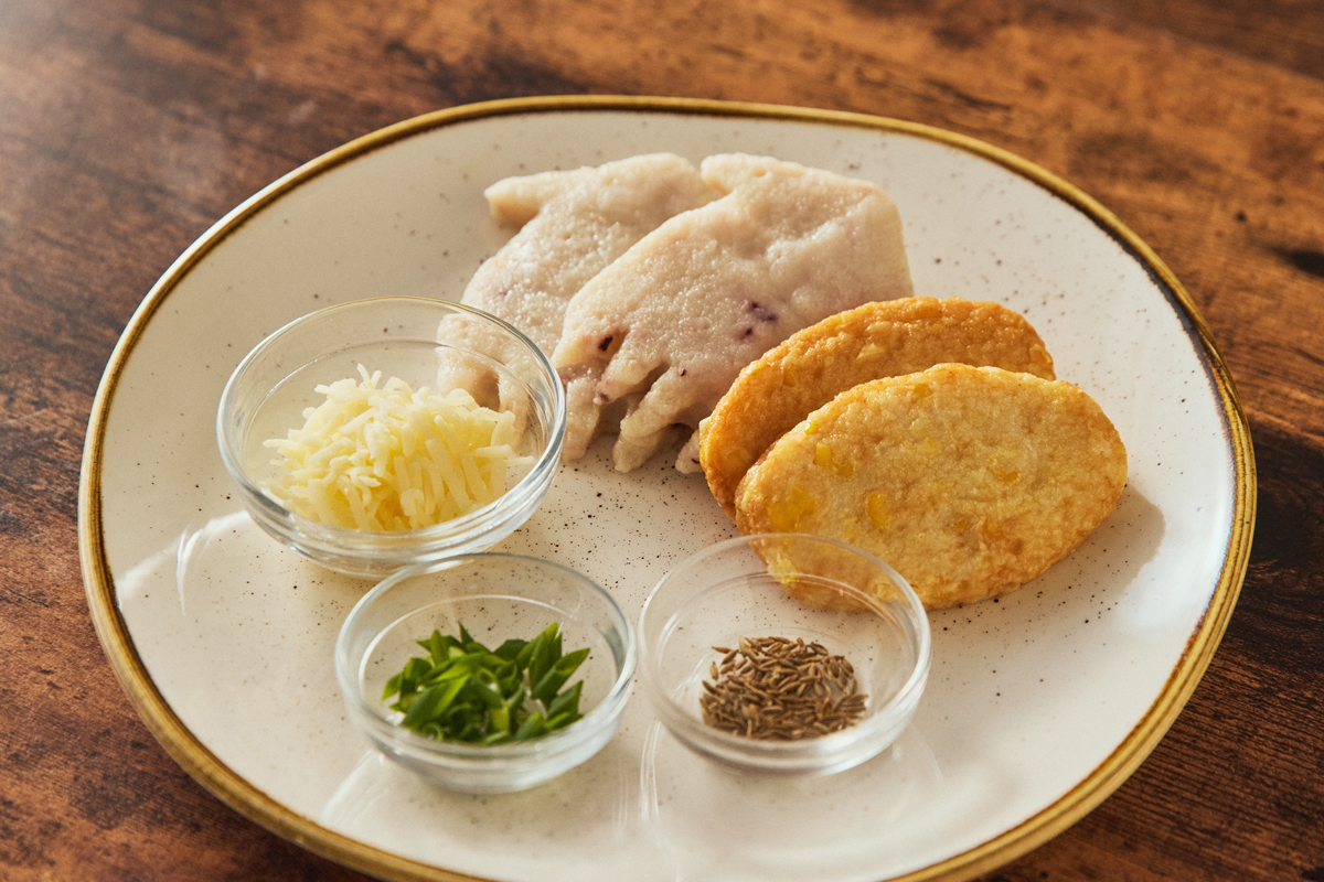 焼いたチーズの上にスパイスや薬味でアクセントをつけるのもおすすめです。今回はクミンとネギを合わせましたが、チリや生姜などに変えても楽しいかも。