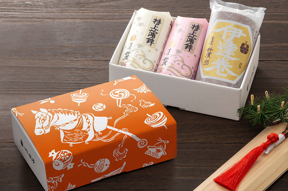 「ちどり」の詰め合わせには、紅白の「謹上蒲鉾」と「伊達巻」を入れております。