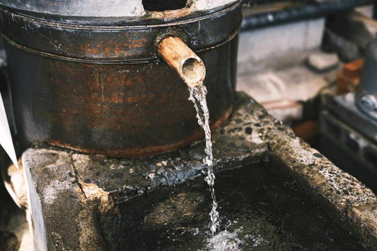 仕込み水は富士山東麓に水源をもつ丹沢山系の伏流水で、日本では珍しい中硬水です。ミネラルが少ない軟水で仕込む日本酒が甘口になりやすいのに対し、ミネラルが多い硬水ではキレのある辛口になりやすくなります。「海と大地」は中硬水で仕込むことですっきりとした中辛口になっていますので、かまぼこや魚、和食の食中酒として最適です。