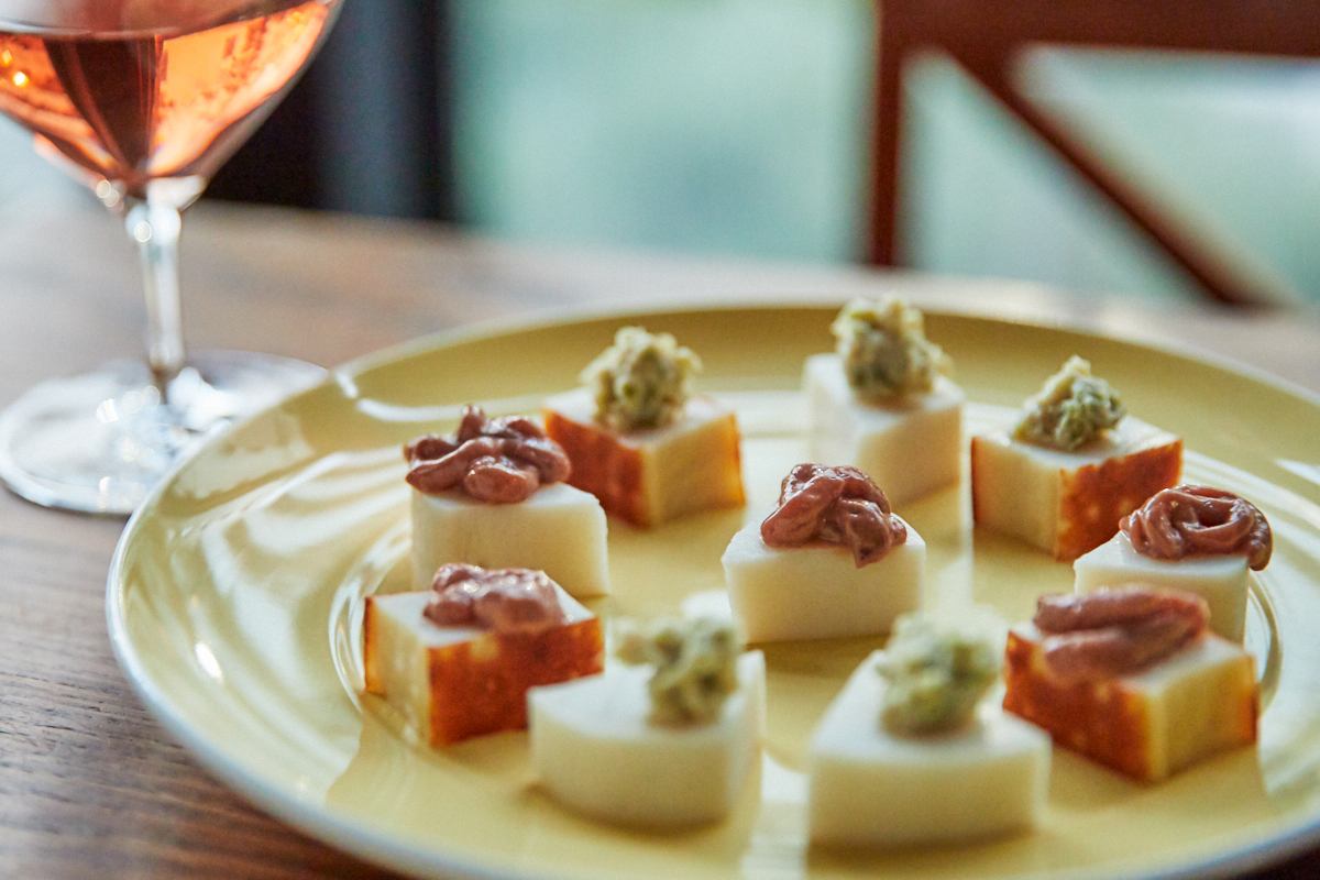 肴には板かまぼこをお忘れなく。分厚く切って、わさび漬けや塩辛を板かまぼこにのせて合わせるのも◎。