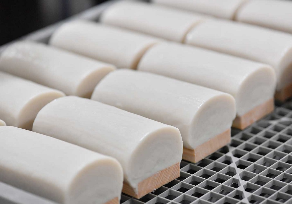 機械生産が一般的になった現在、蒲鉾製造の中でも「板蒲鉾」を手づくりできるのは練り製品業界全体でも極めて少なくなりました。「古今」を作り続けられるのは、恵まれた環境です。