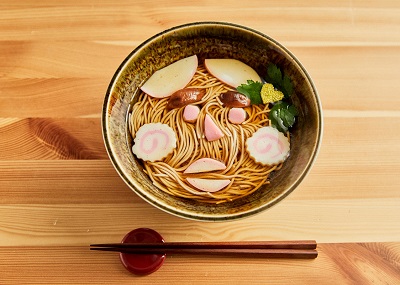 江戸時代にそば屋「太田庵」が考案したとされるおかめ蕎麦。かまぼこや椎茸、三つ葉などを使って…