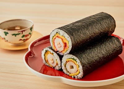 「百年ちくわ」をがぶりと威勢よく。開運招福の恵方巻です。 白身魚のすり身に上質なサバと煮…
