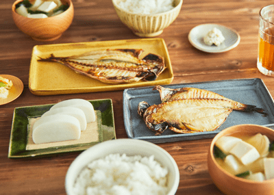 アジなどの干物はうまみたっぷりの伝統食材です。焼くだけであっという間に食卓の主役のできあが…