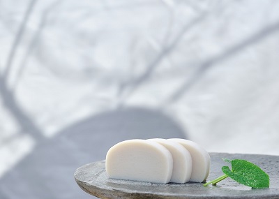 超特選蒲鉾古今にはもうひとつ、あでやかな「鹿の子」があります。表面の白を透かして見える紅と…