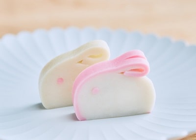縁起のよい紅白のかまぼこで、干支の兎(うさぎ)を作りました。 うさぎは俊敏に跳ねることか…