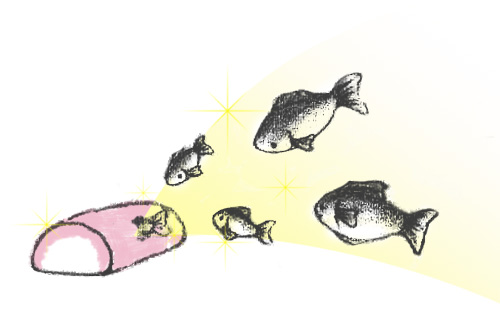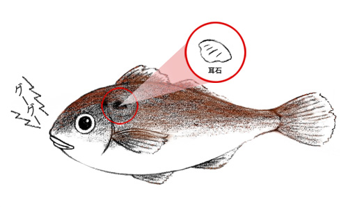 耳石は、魚が泳ぐときの平衡感覚を保つのと同時に聴覚の役目をもっているようです