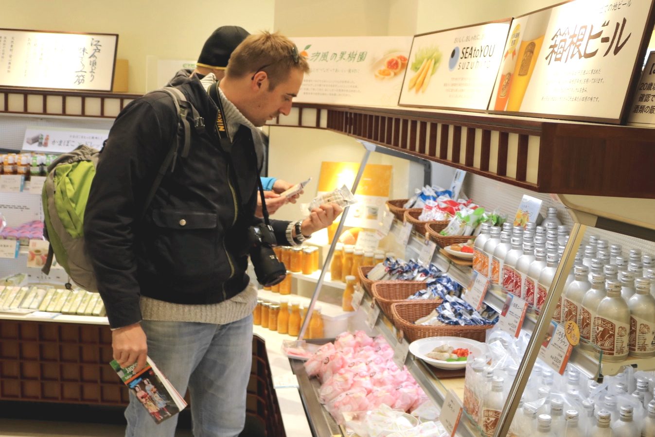 There are many delicious options available at the Hotoriya shop. Enjoy Hakone Beer, wonderful snacks, and the Seasauge, sausages made of scallops, shrimp, and squid. Take the tastes of Japan with you!