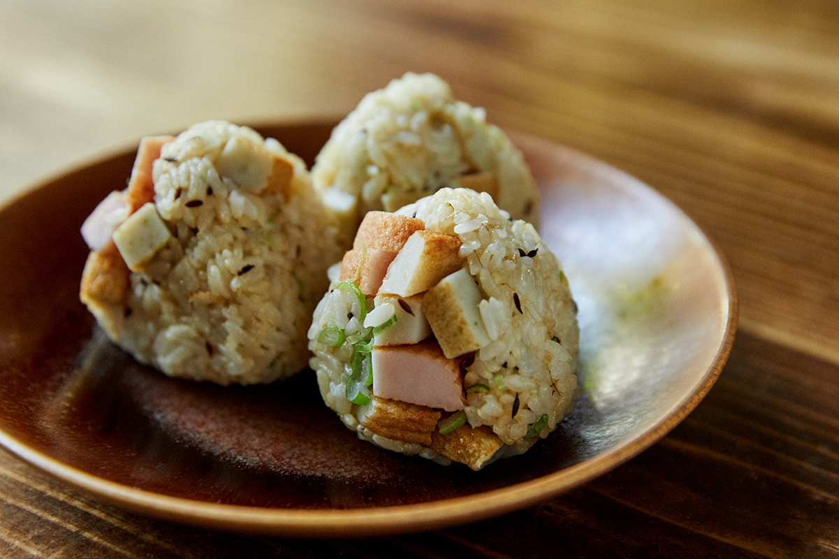 Rice Balls are known as onigiri in Japanese. Onigiri can come in different shapes and hundreds of different flavors. They are often found in the shape of a triangle with a bit of seaweed wrapping. The onigiri is a staple of Japanese life; eaten throughout life, at different times. Traditional flavors of the onigiri include umeboshi (pickled plum), salmon, tuna, konbu (seaweed) and much more. The onigiri is special in it's simplicity yet has the ability to be flavored many different ways. The onigiri was mentioned in Japanese literature 900 years ago when it was known as Tonjiki. The tonjiki were easy meals to be enjoyed during picnics during the Heian period of Japanese history. Today, onigiri is a main draw to the thousands of convenience stores in the country. You can also find speciality onigiri shops or even make your own at home. The onigiri is a traditional Japanese food, but also a simple, fun, and interesting way to experiment with flavors and ingredients. Today I am introducing a recipe of "Ginger-Cumin Spiced Rice ball with fried Kamaboko" created by Yukana Abe, who is an owner chef of "and CURRY" in Japan.