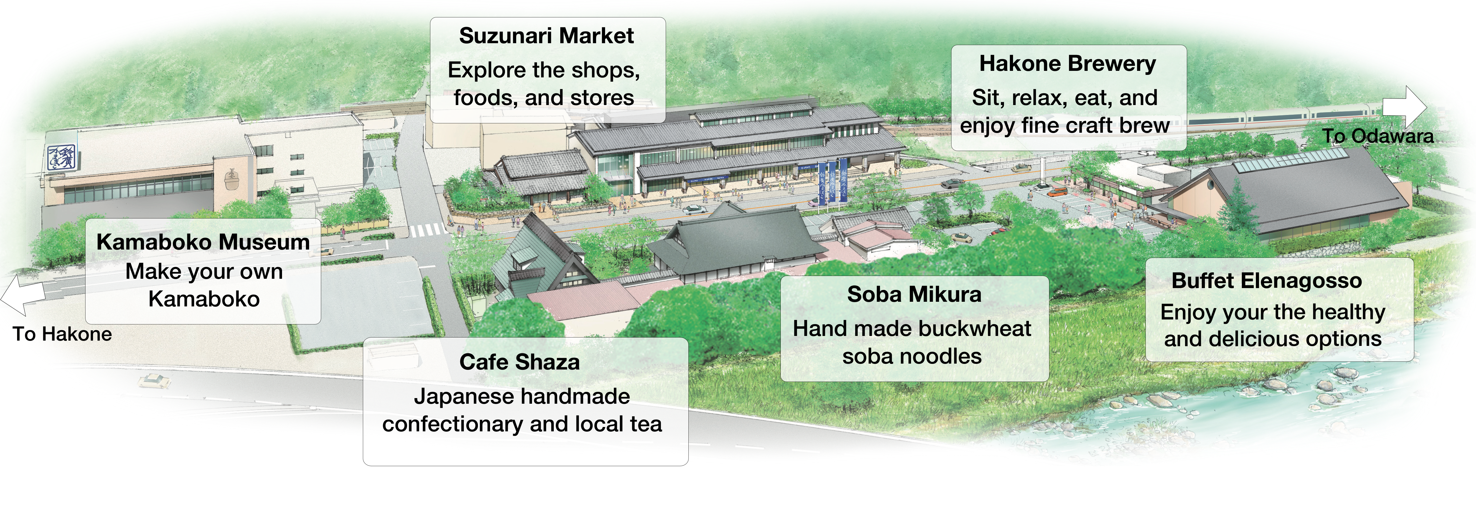 Elennagosso is a fresh and healthy organic buffet restaurant using locally grown seasonal vegetables and seafood. We offer over 50 assorted dishes including; Kamaboko, salad, seafood, soups, grilled meats, curry and more to choose from. Enjoy a culinary chance to explore and enjoy the tastes of Odawara and Hakone.