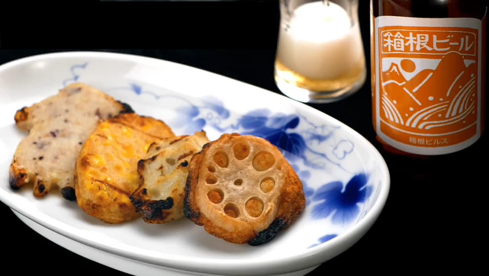 After enjoying oden, we have some leftover oden. When this happens, our favorite way to eat them is to slightly roast them. Roasting makes the texture of the ground fish fluffy and gives it a fragrant aroma. The kamaboko is especially delicious because it has absorbed the oden broth. It goes well with Hakone beer.