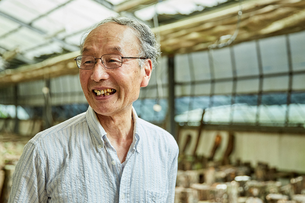 I've been growing shiitake mushrooms in this area for more than 40 years now, and they're of high quality. It is thanks to the abundant underground water in Odawara that we are able to cultivate these high quality shiitake mushrooms. This underground water is used not only for cultivation, but also in summer when the temperature rises. The water is sprayed inside the house where mushrooms are grown and used as a natural cooler. Freshness is essential for shiitake mushrooms. We deliver freshly harvested shiitake mushrooms to Suzuhiro, so they are always fresh and ready to be included in their dishes.