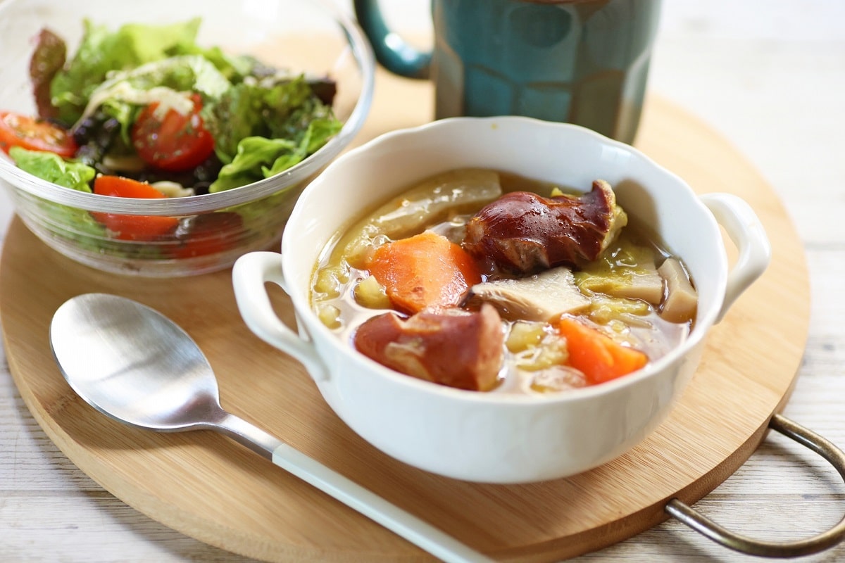 ショウガやごぼうなどの根菜類を使用した具沢山のスープや汁物もいいでしょう。根菜やショウガには体温を上昇させて代謝をあげるポカポカ効果もあるため、温かいスープとの相性抜群です。
