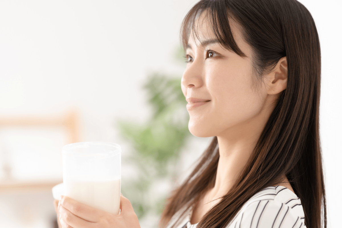 タンパク質を含む牛乳や豆乳、プロテイン飲料、アミノ酸入りのゼリー飲料などがおすすめです。特に牛乳は、筋タンパク質の分解を抑制する作用や、筋肉痛を軽減し筋トレ後の筋力を早く回復させる働きがあります。