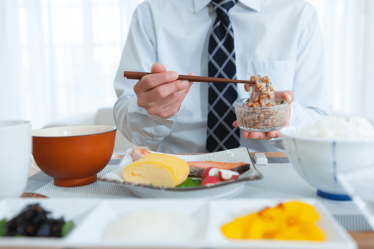 卵と納豆は、そのまますぐに食べられる便利な食材の代表です。どちらも筋トレに嬉しいタンパク質を豊富に含んでいます。ごはんからは主に糖質がとれ、活動のエネルギーと筋肉の材料をしっかりと補えるでしょう。