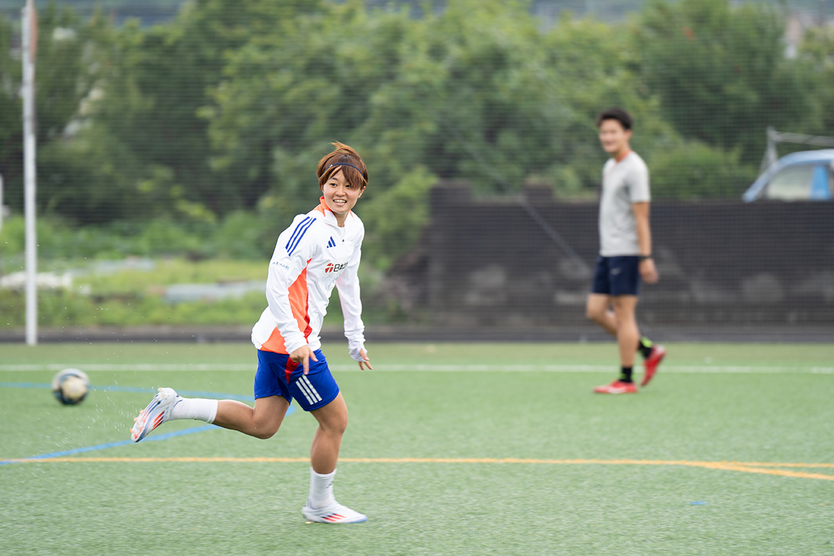 当時は男子のようにプロのリーグがあるわけではなかったので「働きながらサッカーを続けるのかな」とも考えていたのですが、そうこうしているうちにWEリーグができて。タイミング良くプロになれちゃったというか、そういう感覚です。ただ、やり続けたからこその今ですし、続けてこられたからこそ得られた結果かなとも思っています。