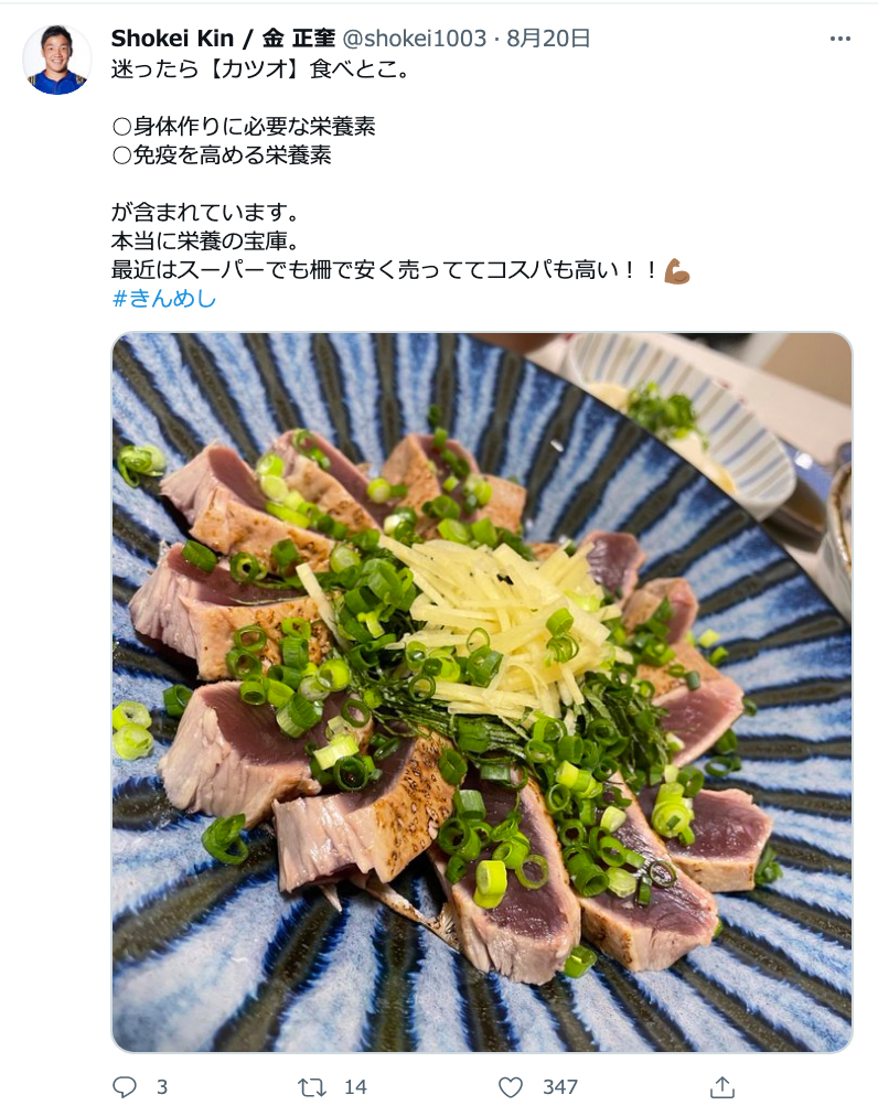 メインに魚を食べているとのことでしたが、金選手の考える魚肉タンパクの良いところはどういったところでしょうか。