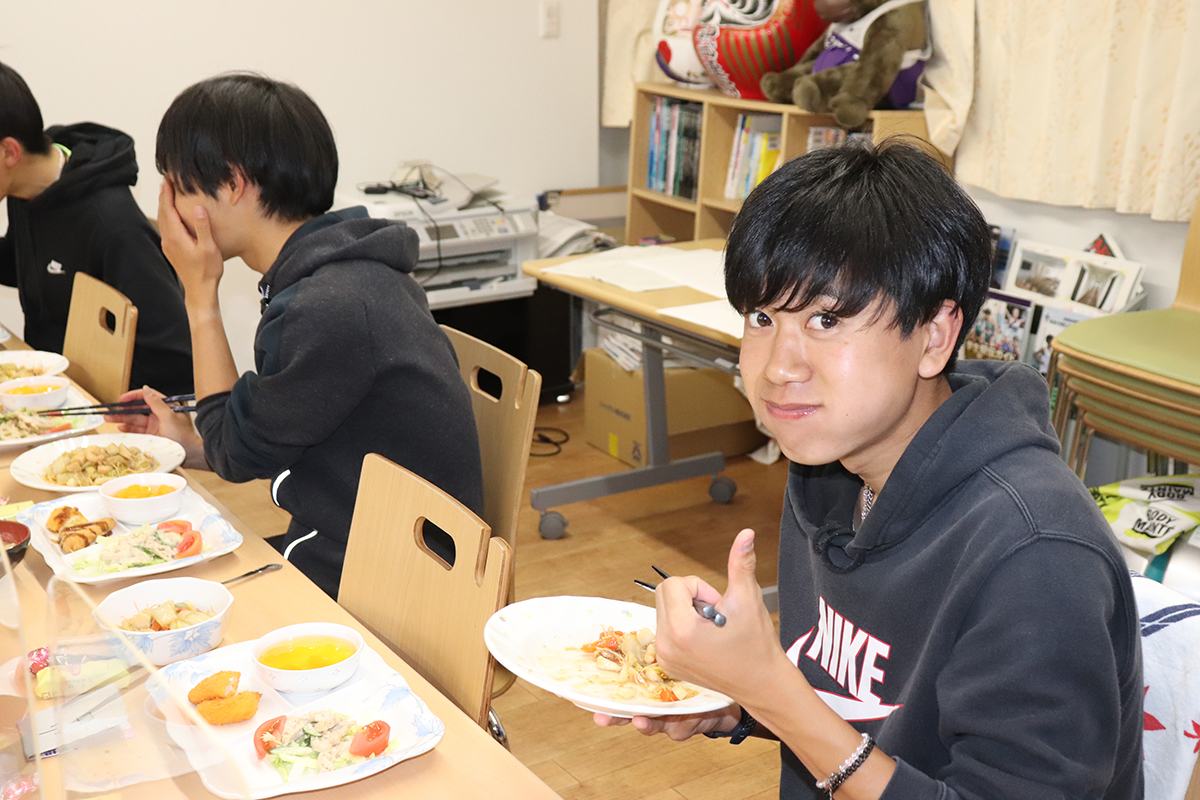 プロテインも飲んでいますが、バランス良く栄養を摂るには食事の中でたんぱく質を摂れることが一番だと思うので、肉や魚を積極的に食べるようにしています。寮の夕飯には、たんぱく質豊富なメニューが並ぶのでとても助かっています。