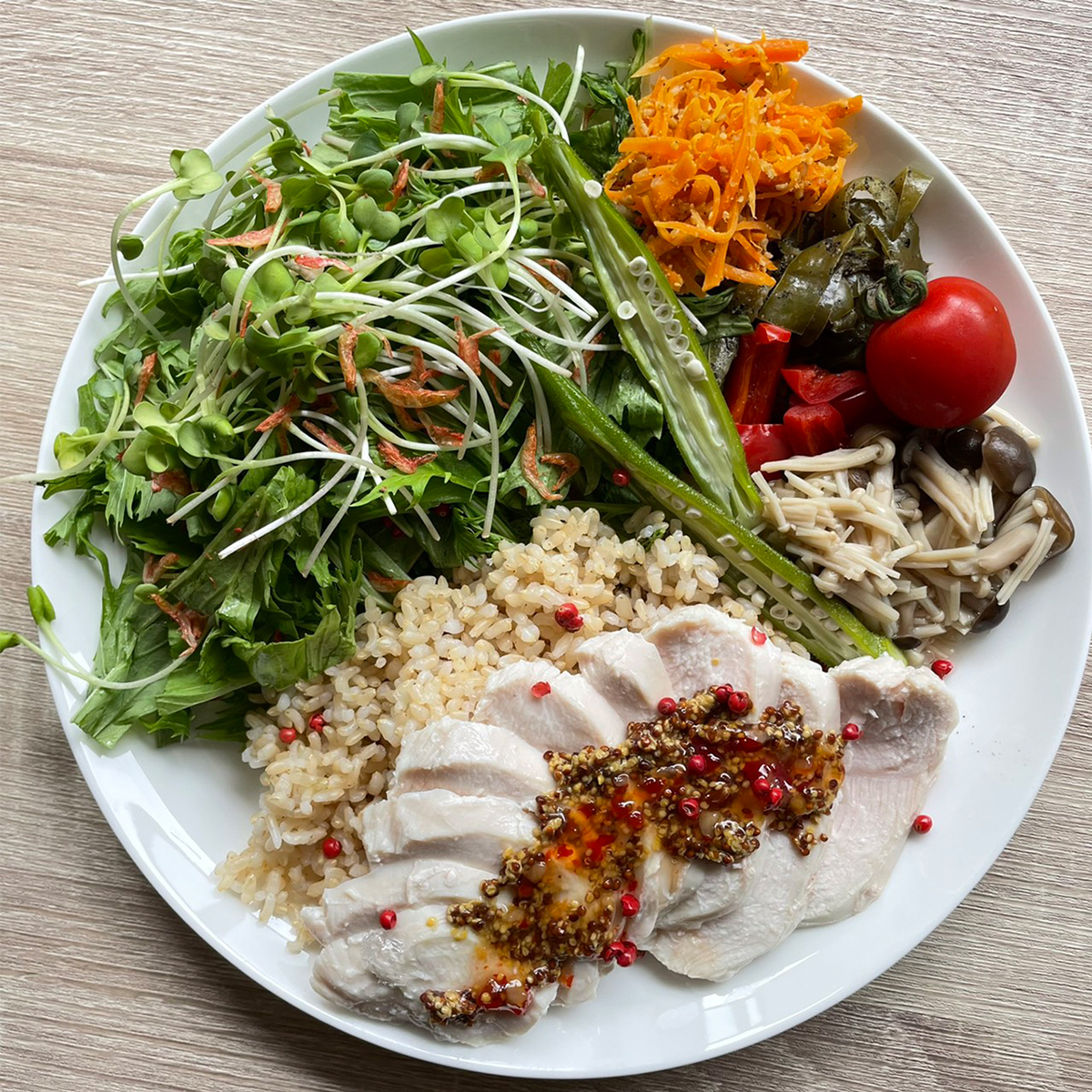 動物性か植物性かを考えながら、3食の中で必要なタンパク質量を摂るようにしています。どうしても忙しい時にはプロテインで摂取することもありますが、なるべく食事から摂ることを心がけています。