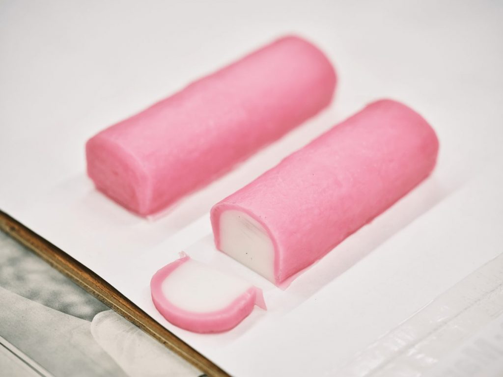 「シンプルなものは特に難しいですね。そう、かまぼこは結構難易度が高いんです(笑)。白色だとごまかしがききませんから。塩化ビニル樹脂という無機質な素材に、色を加えるだけで温かみやひんやりとした質感を出すのが、いちばん苦労するポイントです。逆に、後からいろいろと着色できたり、見た目が複雑なものなどは、意外と逃げ道があるんですよ」