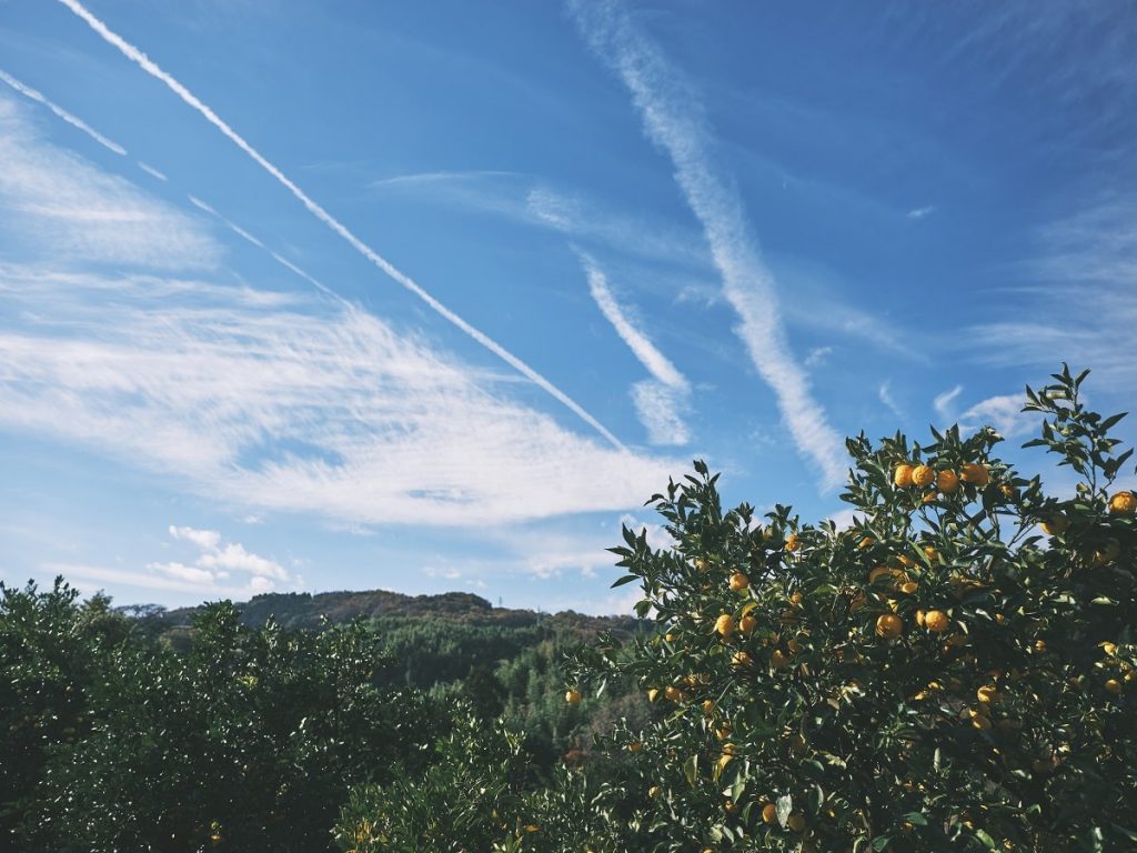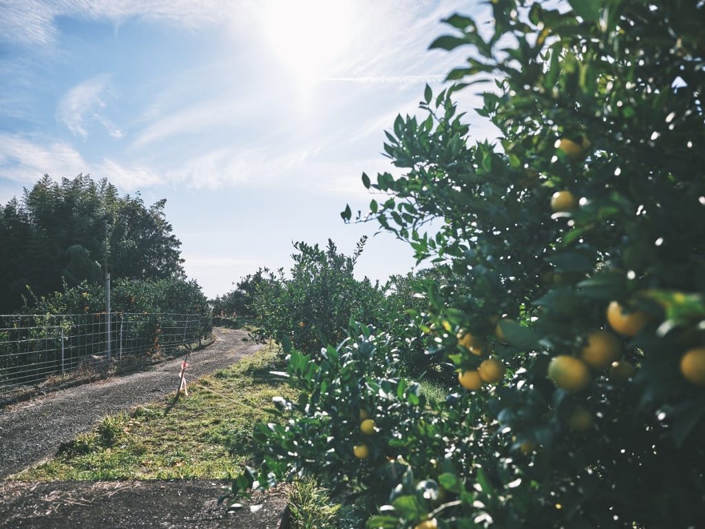 山の中腹に目を向けると、黄や橙の柑橘類が実をならしている。取材に行った初冬はまさに柑橘類のシーズンだったためか、車から降りるとそこはかとなく柑橘の匂いがした。