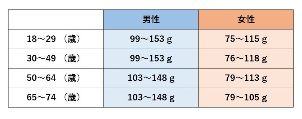 ここでは、1日に必要なタンパク質の量を解説します。厚生労働省が策定した日本人の食事摂取基準(2020年版)によると、活発な運動習慣を持つ人(身体活動レベルⅢ)のタンパク質の必要量は以下の表の通りです。