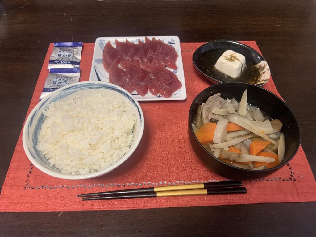 タンパク質を多く摂取するようにしています。一日5食の食事をする中でバランスよくタンパク質を摂取するようにしております。練習を朝の5時から行なっているのですが、4時に起きて一食目、練習後にもう一食、お昼ご飯、練習前に捕食で一食、練習後にもう一食食べています。一日5食食べるようになったのは、4年前ぐらいですかね。3食ですと自分の場合は、栄養の吸収効率が少し悪く、体調を崩してしまうことが多かったんです。栄養士さんにも相談しながら、自分でも本を読んで勉強して、食事回数を多くして小分けに摂取するようにしました。小分けに摂取した方が実際に体の状態がいいので、4年前から現在にかけてできる限り続けています。