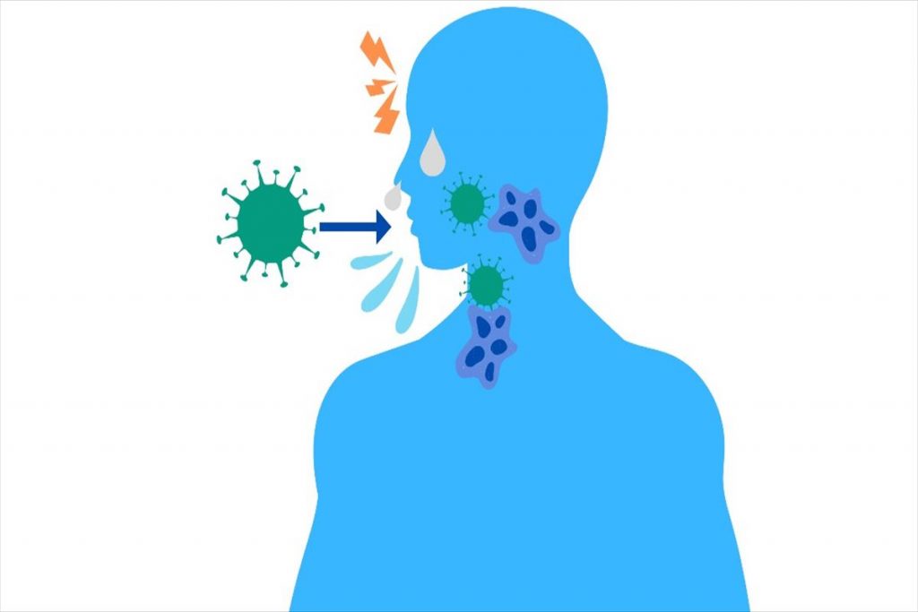 鼻水がのどに流れて刺激になり、のどの痛みや咳がでます。