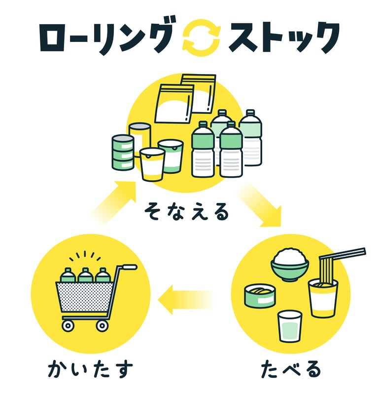 「ローリングストック」は普段の食品を少し多めに買い置きし、賞味期限を考えて消費し買い足すことで一定量の食品の備蓄をしておくことをいいます。