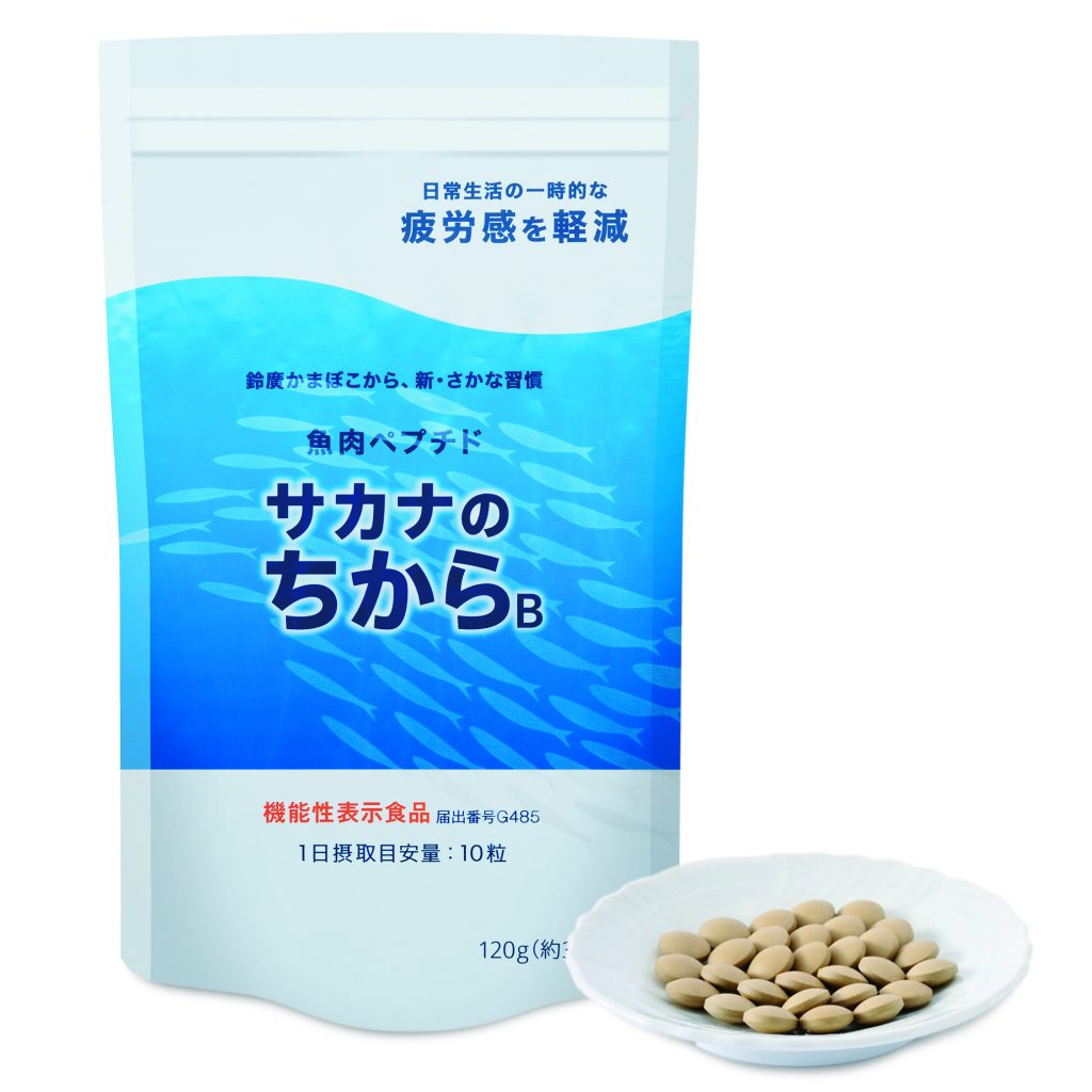 鈴廣かまぼこ開発の「サカナのちからB」は、天然の白身魚でつくられたサプリメントです。
