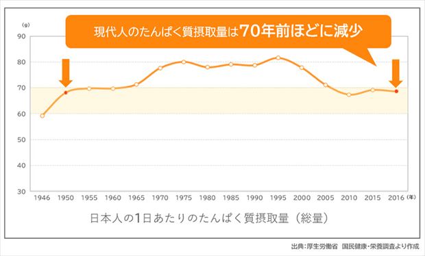 現代人はタンパク質の「摂取量」が減っている