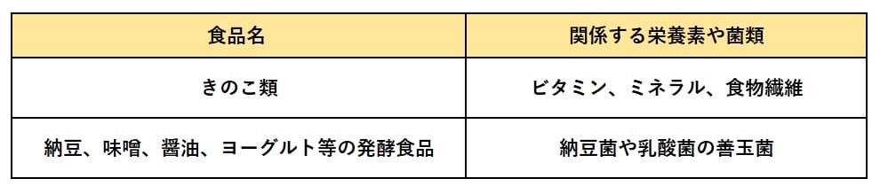 腸内環境を整え、免疫力向上に役立つ食品は次の通りです。