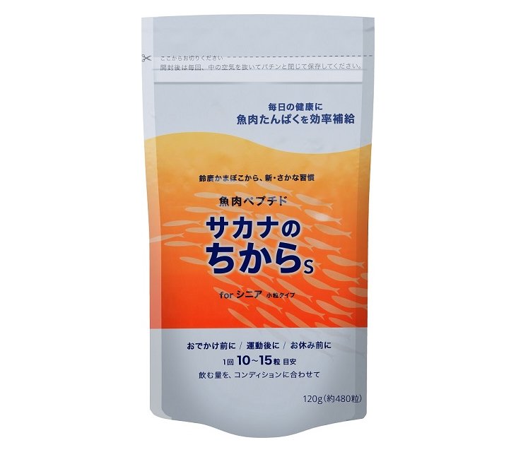 食欲がなかったり、たくさんの量を食べるのが苦手な方には「サカナのちから S for シニア」がおすすめです。飲みやすい小粒タイプのサプリメントで、食事の量を増やすことなく、水で飲むだけでタンパク質を素早く摂れます。筋力を付けるための手段の一つとして、検討してみませんか?
