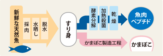 良質な魚肉たんぱくを酵素で細かく分解し、アミノ酸20種を吸収しやすい形にした魚肉ペプチドが原料です。