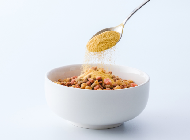 「ひとさじの魔法」の栄養成分はたんぱく質のみですので、「ひとさじの魔法」だけ食べていると栄養バランスは偏ってしまいます。あくまでバランスの良い総合栄養食に良質なたんぱく質をプラスするものとしてご利用ください。