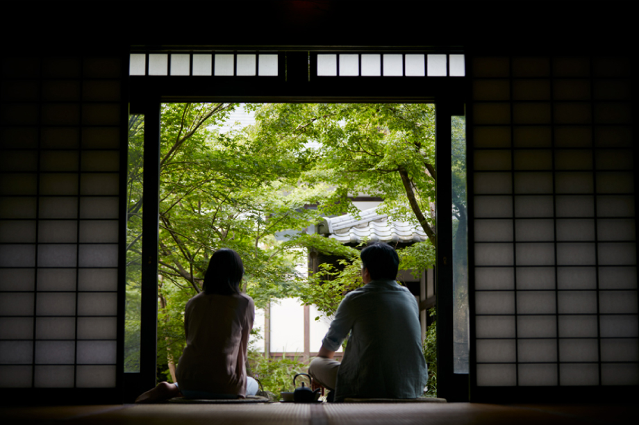 富山八尾から移築した合掌造りの建物の囲炉裏で鮎を焼くもよし、縁側で利き酒をするもよし、茶室でお点前を楽しみもよし、あなた様のお別荘のようにお過ごしください。