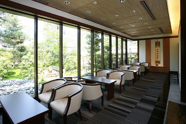 鈴廣会員特典サービスの「如倶楽部」の会員様がご利用いただける茶室に見立てたラウンジです。露地庭と地元の銘茶「丹沢大山茶」でくつろぎながら、旅の疲れを癒して。