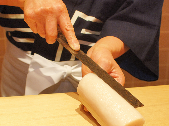 色白く、しんねりしていて、きめ細かな歯ごたえ、しっかりと香る魚の風味。
