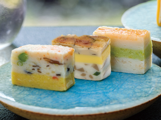 蒲鉾のオードブルでございます。鈴廣七代目廣吉のころ、箱根の旅館の板前さん方からお知恵をおかりして創案いたしました。