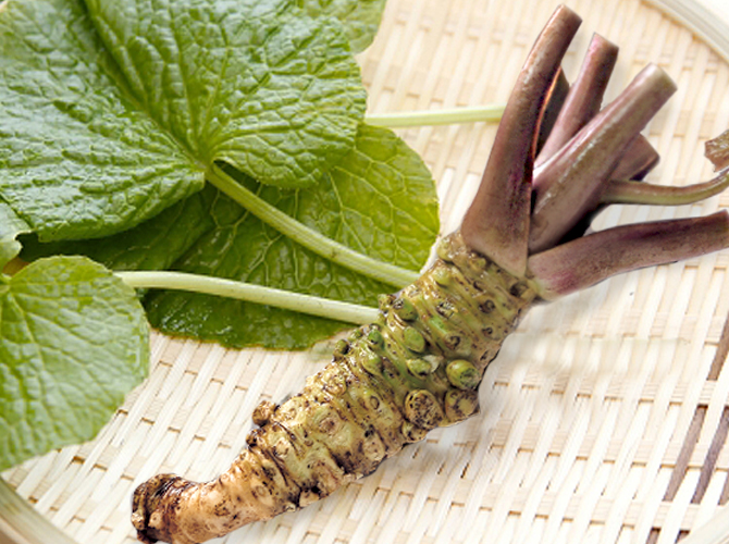 伊豆天城産のわさびを使用。わさびの量が多く濃厚な味わいで、しっとりとした風味と食感が感じられます。