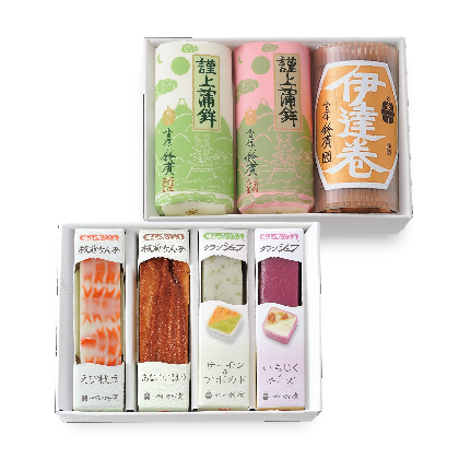 ご自宅づかいに、手土産に、またご贈答にもおすすめな謹上蒲鉾。その他、伊達巻や揚げかまぼこなど人気商品を取り揃えております。